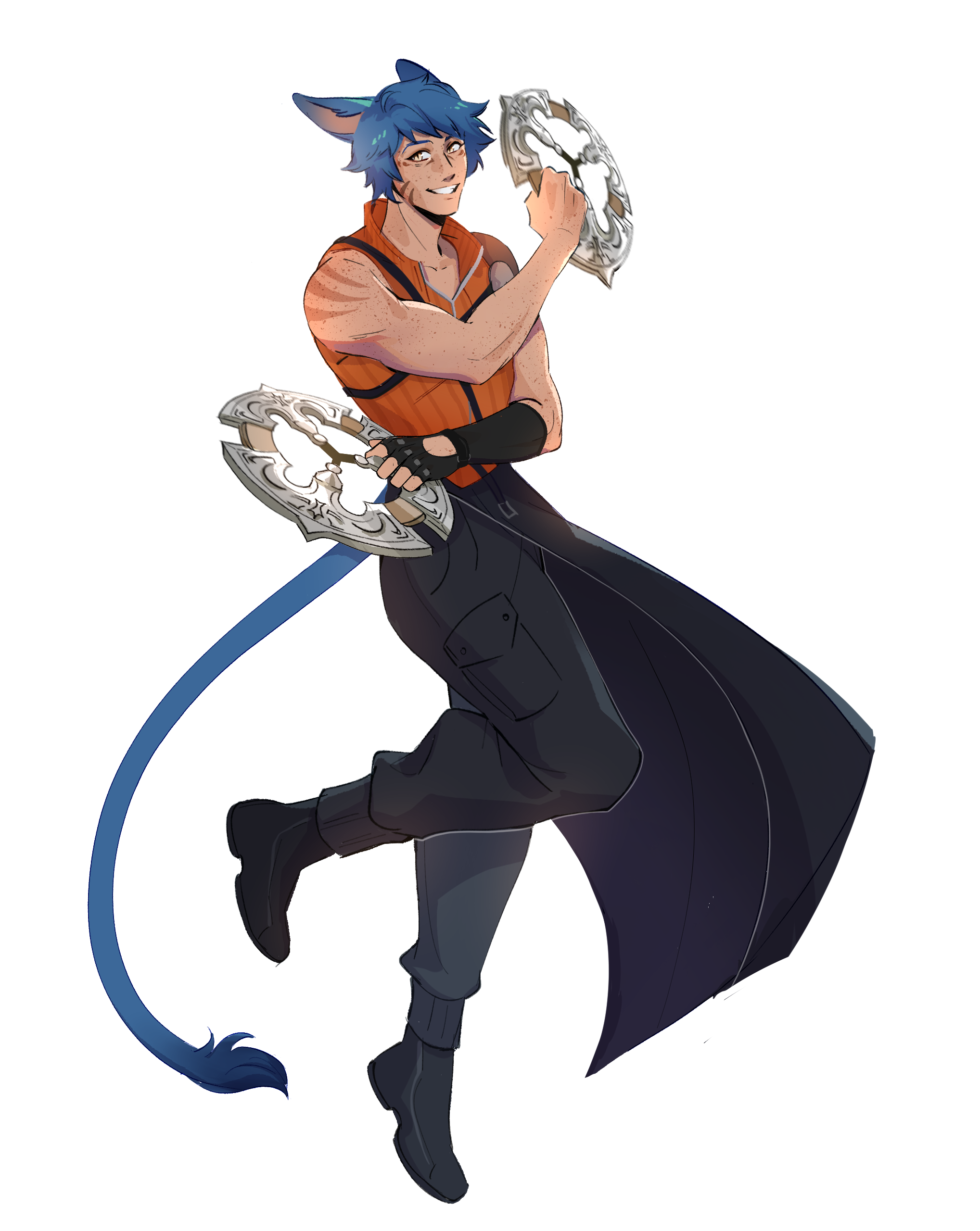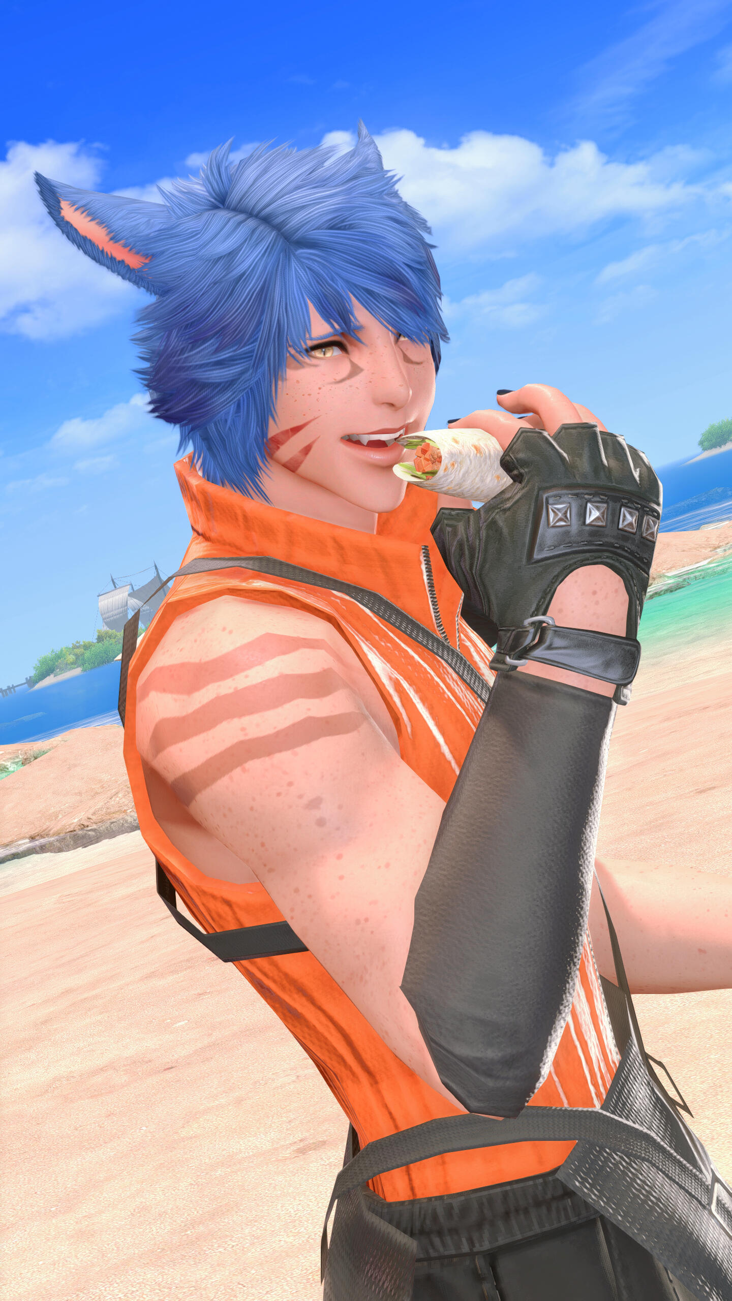A’vett was born on a small farm in Eastern La Noscea, near Costa del Sol, where he grew up with his loving parents but few friends. In spite of that, he's always ready to lend a helping hand and assumes the best in others to the point of naiveté. A’vett can always be found accompanied by his animal companions, a small weasel named Breadstick and a cattle dog named Meatloaf (whom he's able to communicate with through his Echo). Having low self-confidence he uses humor to cope, but his friends are quick to hype him up when he needs it.A'vett also makes up 1/5 of a ragtag group of adventurers known simply as "Wayfinders;" his found family and best friends for life.