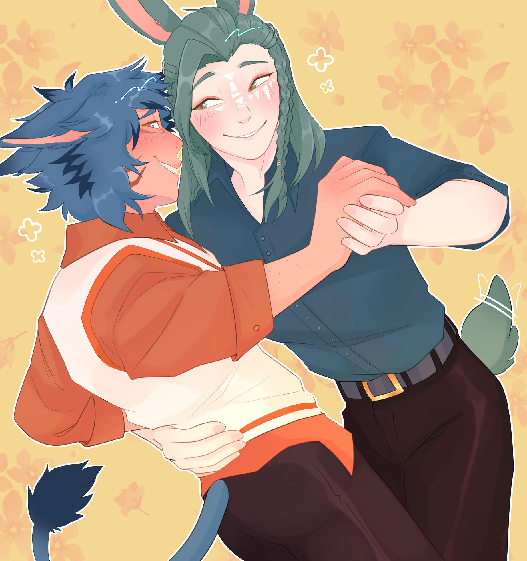((I’m also okay with IC flirtation (for ERP I prefer it evolve naturally to that point, but I am okay with it)! If you want to RP any darker themes, or if you have any other ideas that you’re not sure if I/A'vett would vibe with just run it by me first! 🧡))